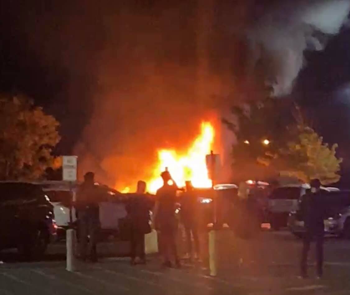 Firefighters report 10 cars on fire at the parking lot by the Roosevelt Field Mall. This is by the Dicks Sporting Good store lot on Old Country Road. Fire marshal is now investigating of possible arson. EMS is checking for injuries. Heavy delays on Old Country Road. Ongoing investigation.