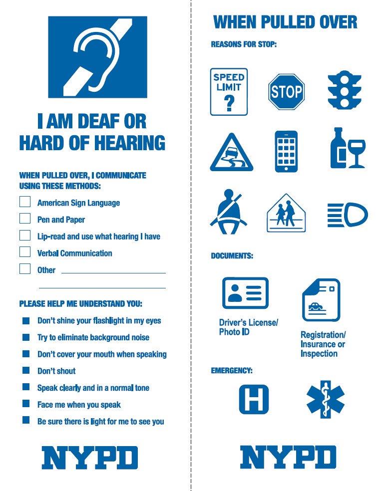 The NYPD will issue new cars to help drivers who are deaf or hard of hearing to communicate effectively with police. The card can be placed next to the visor and can be used whenever they are pulled over for a reason. About 11,000 cards will be issued starting this week.