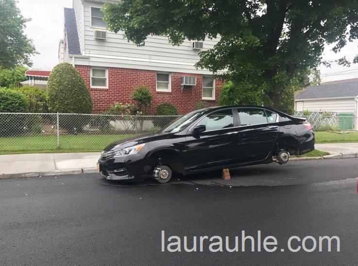 Bellerose - Police are on the scene at 248th Street and 83rd Avenue reporting wheel theft. All four wheels were stolen when the owner of vehicle discovered on Tuesday morning. Reported 9am.