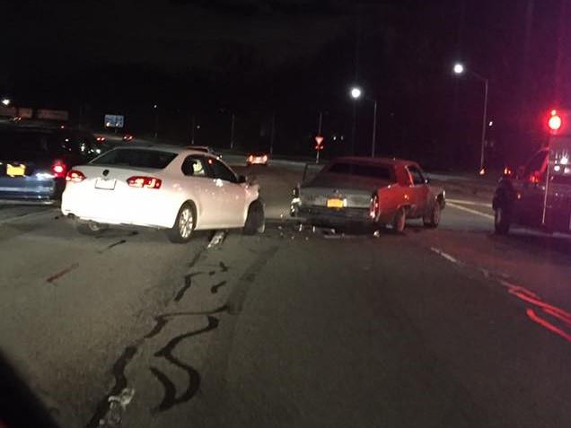 Northern State Parkway westbound at Exit 28, multiple vehicle accident with all lanes closed. One car flipped. EMS is on the scene attending to the injured. Reported 11:30pm.