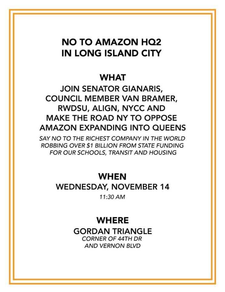 Amazon will have press conference on Tuesday announcing the second head office in Long Island City.