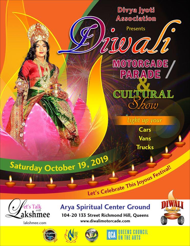Saturday, October 19. The parade starts at Liberty Avenue and 133rd Street at 5:30pm. Before the parade there will be a ceremony at 3:00pm at The Arya Spiritual Center Grounds 104-20 133 Street Richmond Hill. Open to the public.