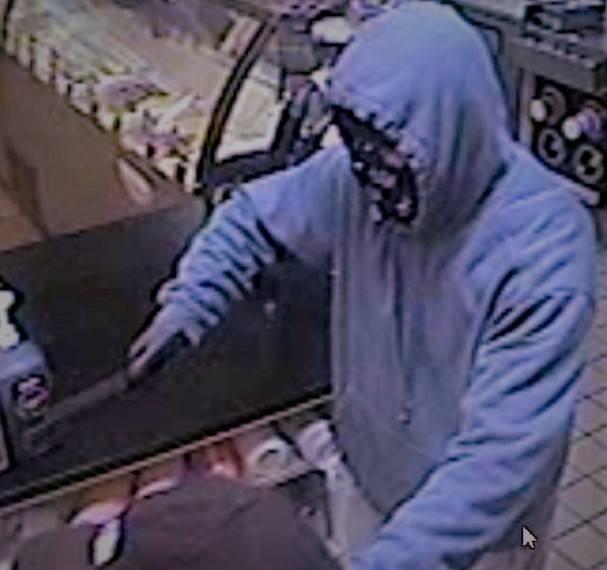 The suspect wearing mask after entering the store displayed a gun demanding cash.