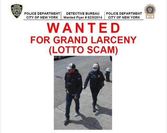 Police are investigating two new cases in Queens and Nassau of a new lottery scam. In Jackson Heights, a couple approached a victim claiming they won the lottery and coerced a victim to give $2,600 to assist in cashing the ticket. Police released the surveillance picture of the incident happened on Apri 19 around 2pm on 43rd Avenue and 104 Street.