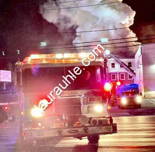 Searingtown Road is shut down along with local roads due to heavy smoke in the area.