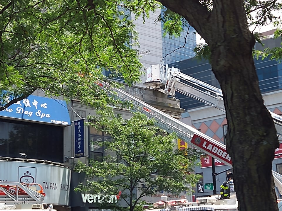 FDNY report fire at 37-29 Main Street. This is inside a basement of a commercial store in Flushing. EMS is checking for injuries. The fire started around 12:30pm. Firefighters are working on the scene.