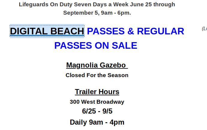 Officials stated digital beach passes are available. The cost per beach pass is $230.