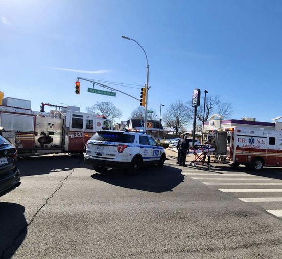 Police closed off the intersection of Utopia Parkway and Northern Blvd reporting a collision between a bicyclist and a vehicle. This is in Fresh Meadows. Several witnesses told the police the bicyclist ran the light. EMS is working to transport the bicyclist to a local hospital. The driver remains on the scene and is cooperating with the police.