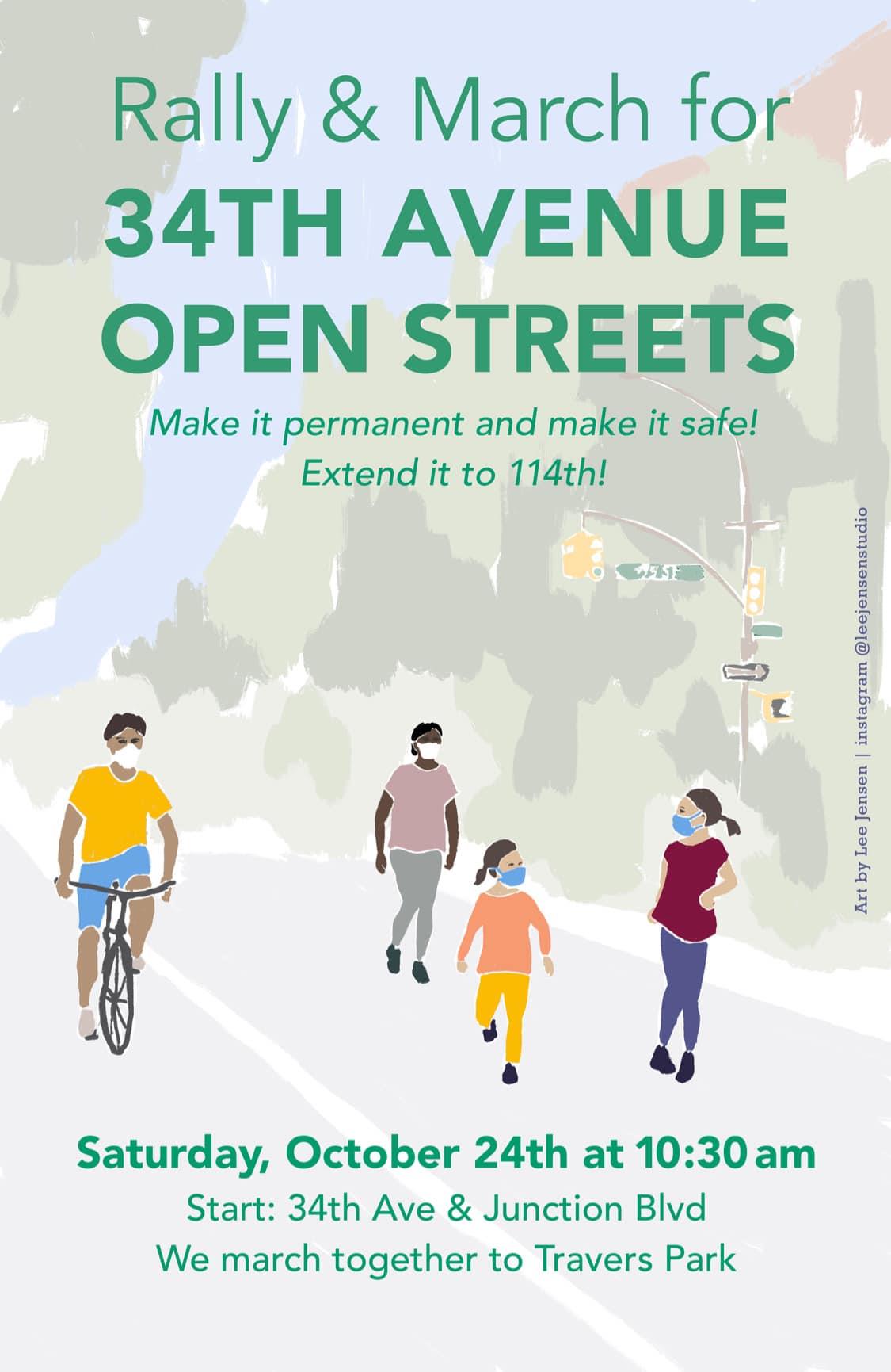 On Saturday, October 24 at 10:30am, there will be a rally to make 34th Street close permanently for bike lanes from 78th Street by Travers Park to 114th Street before the parkways. During the pandemic, 69th Street and Junction Boulevard on 34th Avenue was closed between March 27 to 30 from 10am to 7pm as part of the pilot program. Now a group of bike activists want to make the route stretched and permanent. The event is open to the public.