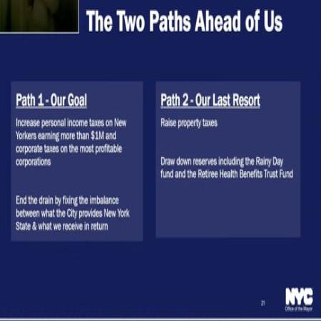 Today the Mayor announced two paths to fix the budget gap. One is to tax the wealthy and corporations and the other is to raise property taxes.