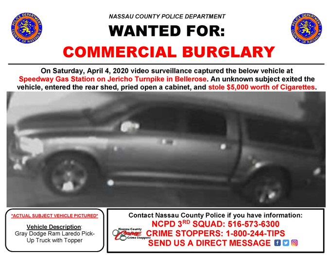 Police reported burglary at a local gas station in Bellerose. It happened on April 4 on Jericho Turnpike. The suspect broke into the location and took off with items. Ongoing investigation.