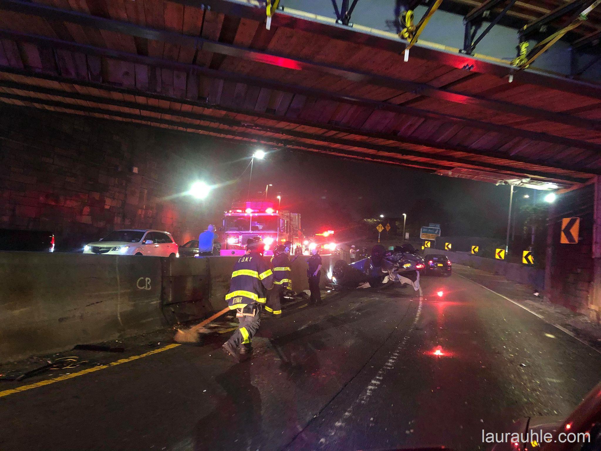 Police have closed off the Cross Island Parkway northbound near the Whitestone Expressway reporting a vehicle flipped, one caught fire, one hit the structure of the bridge. This resulted the Cross Island Parkway shut down for 3 hours when the incident was reported around 9:45pm on Saturday. EMS transported multiple injured to local hospitals. Police stated speeding was the cause. The investigation continues.