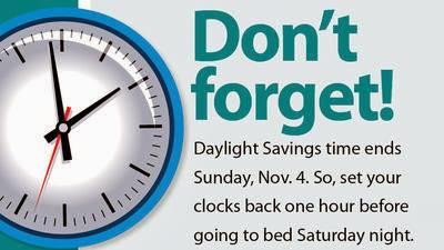 This Sunday, November 4, daylight time ends at 2am with one hour going backward.