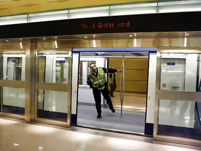 After sliding doors demanded by the local politicians with press conferences over and over when a woman was pushed to her death while back, now a new one is being set up. This time it's for metal detectors. "We want metal detectors now" may be their slogan.