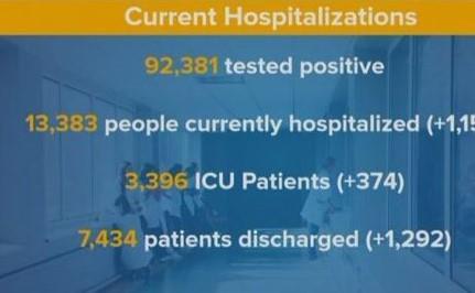 13,383 hospitalized while NYC has 51,809. ICU is at 2,373.