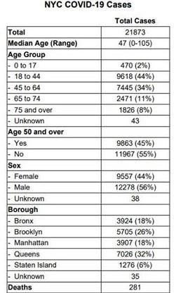 Coronavirus update for NYC morning data