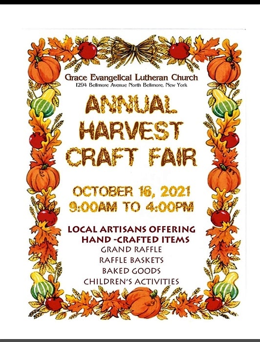 Saturday, October 16 from 9am to 4pm at Grace Evangelical Lutheran Church, 1294 Bellmore Avenue. Activities for children, vendors and more. This event is free and open to the public.