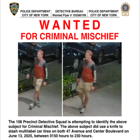 The 108 precint detective squad is attempting to identify the above subject for criminal mischief.The above subject did use a knife to slash multilabel car tryres on both 47 Avenue and centre Boulevard on June 13, 2025 between 0150 hours to 230 hours