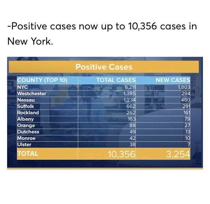 10,356 Positive cases in NY (up from 3,254) and 45,437 tested so far.