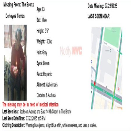 Dehoyos Torres, Male/H/83 from the area of Jackson Avenue and East 149th Street in The Bronx.