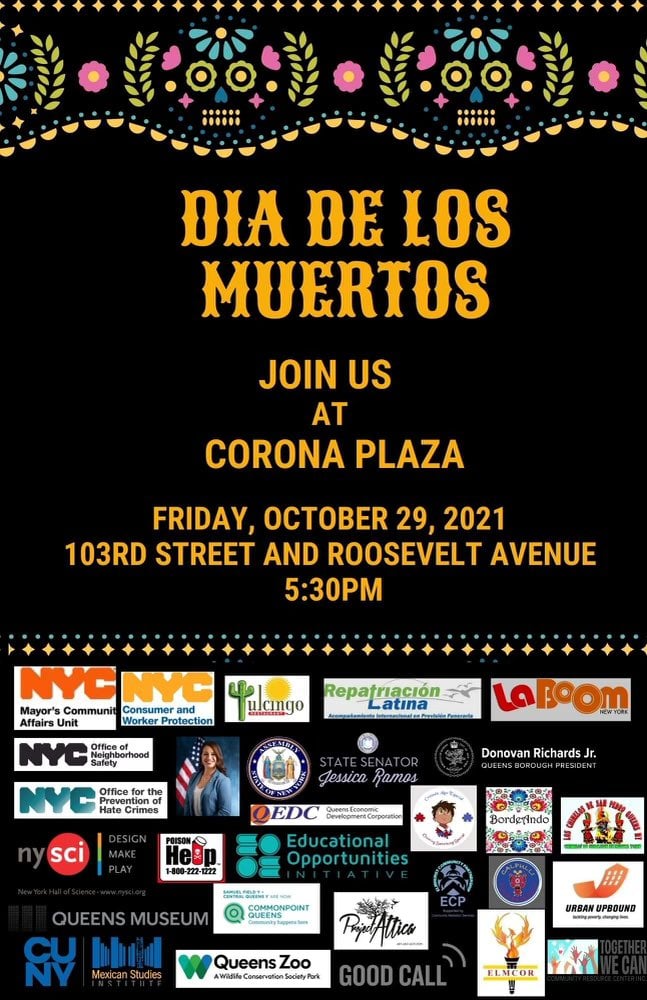Friday, October 29 at 5:30pm at the Corona Plaza in Corona. This is on Roosevelt Avenue and 103rd Street. Traffic will be heavy in the area. Drivers are advised to use alternate routes. This event is free and open to the public.