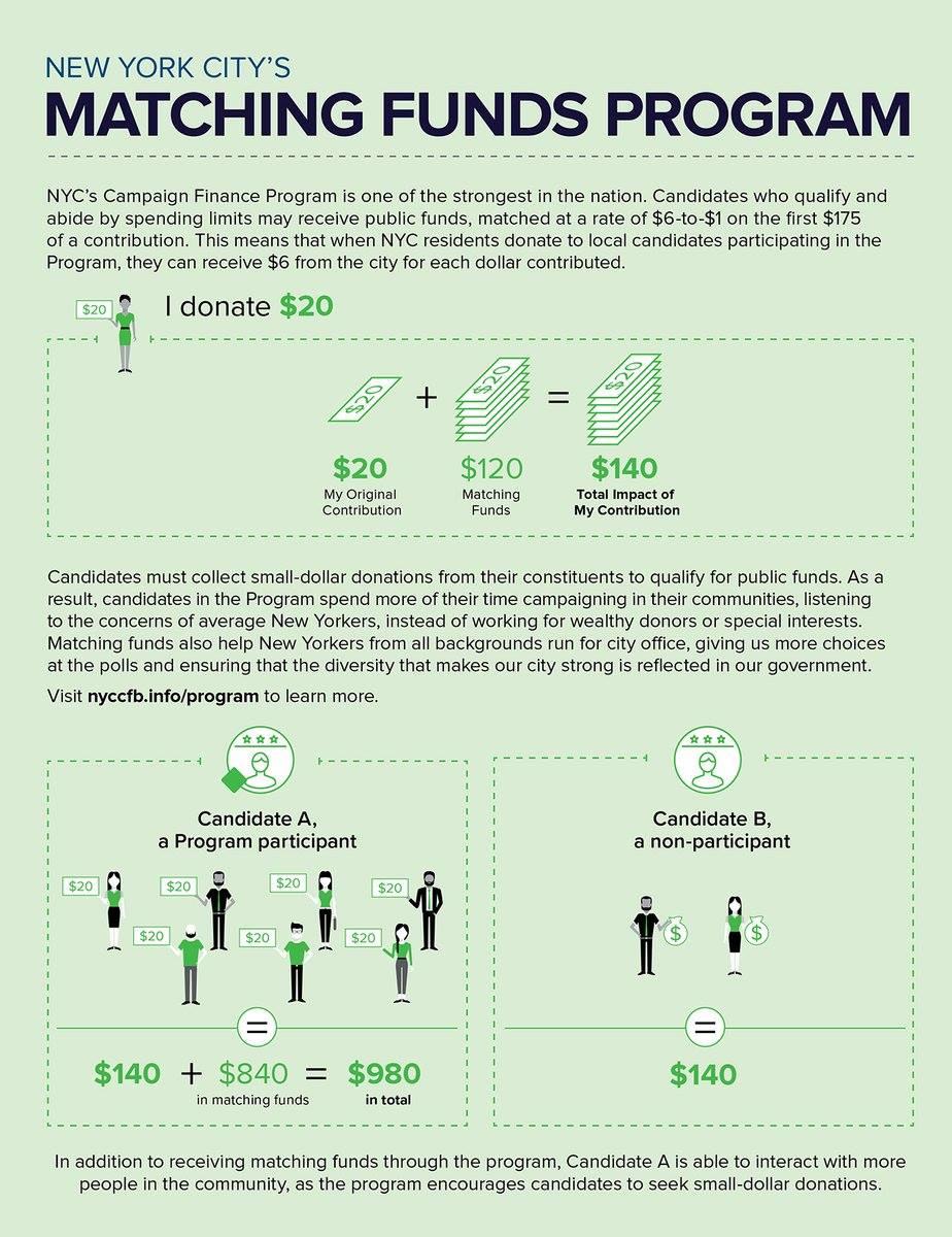 Diagram of 6 to 1 matching fund the city gives out to candidates running for elections