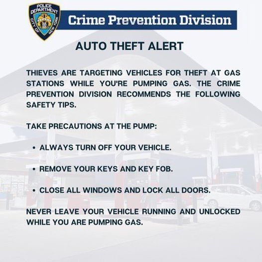 After Nassau County announced their press statement advising all to lock vehicles while pumping gas, NYPD issued a message to all the same.