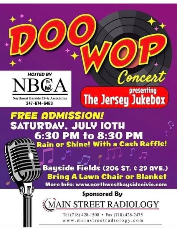 Saturday, July 10 at 6:30pm. This is at the Bayside Fields, 206 Street and 29th Avenue. Bring a lawn chair or blanket. The event is open to the public.