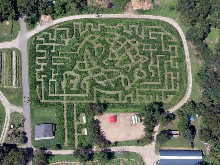 Drone picture of corn maze at Queens Farm in Bellerose