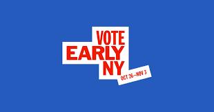 New York voters can also vote before Election Day. The early voting period runs from Saturday, October 24, 2020 to Sunday, November 1, 2020, but dates and hours may vary based on where you live.