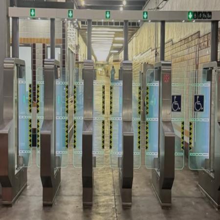 Before, the MTA tried half body turnstiles and it did not work so now almost full body not covering feet for all to cross after paying the full fare.