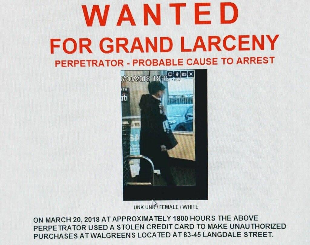 Police released details of a female suspect wanted for using another person's credit card without authorization at Walgreens in New Hyde Park. Ongoing investigation.