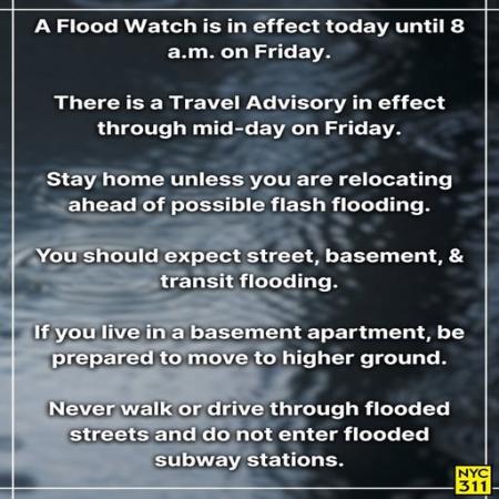 Please don't cry so run home NOW due to heavy rain in NYC that may cause flash floods. It will be hard to walk, drive or even just to look out.
