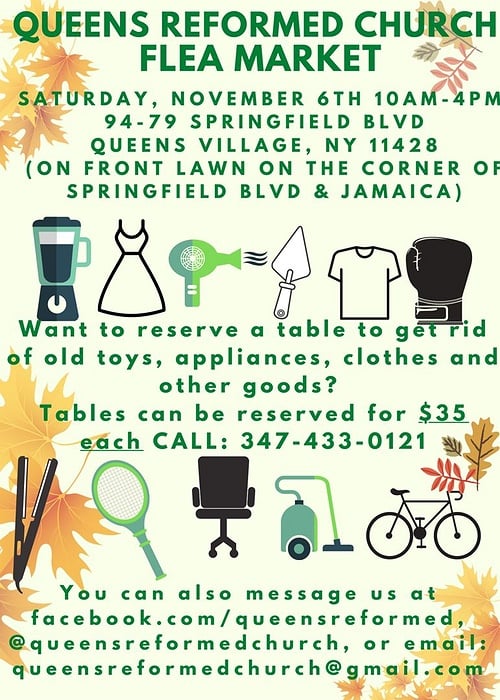 Saturday, November 6 at the corner church of Springfield Blvd and Jamaica Avenue from 10am to 4pm. There are spots available for vendors. This event is open to the public.