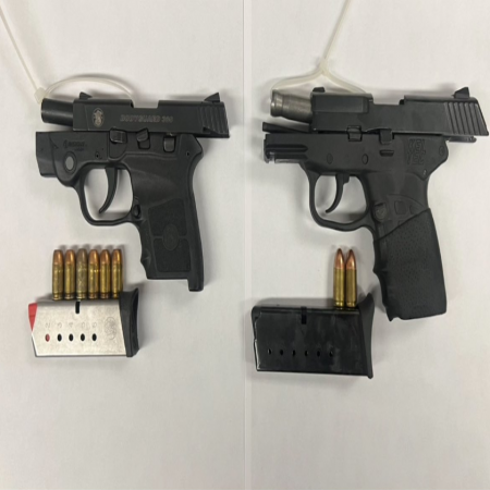 06 NCO recovered these 2 firearms after responding to a trespass call where four individuals were placed under arrest. With further investigation, it was determined that one firearm was reported stolen from New Jersey.