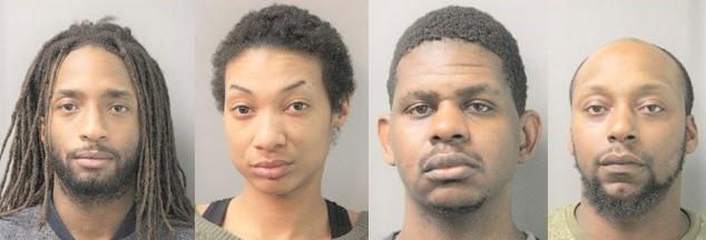 Police arrested Jasmine English, 25, Douglas Dante, 28, both of Elmont, Lawrence Sutton, 28 of Freeport and Kevin Calendar of Westbury and charged with assault and robbery of a 49 year old male victim in Elmont. The incident happened on January 28 around 6pm in Elmont. Police arrested all four after investigation. The victim told police he knew the suspects.