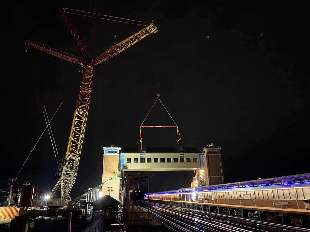 A new overpass for pedestrians was installed at the UBS Arena station of the LIRR last weekend. This way customers can cross between westbound and eastbound from the overpass safely. The schedule to add more full time service for the westbound platform is on time to open this year.