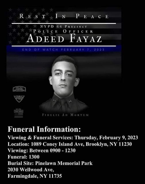 The funeral of the late NYPD Officer Adeed Fayaz will be held tomorrow in Brooklyn.