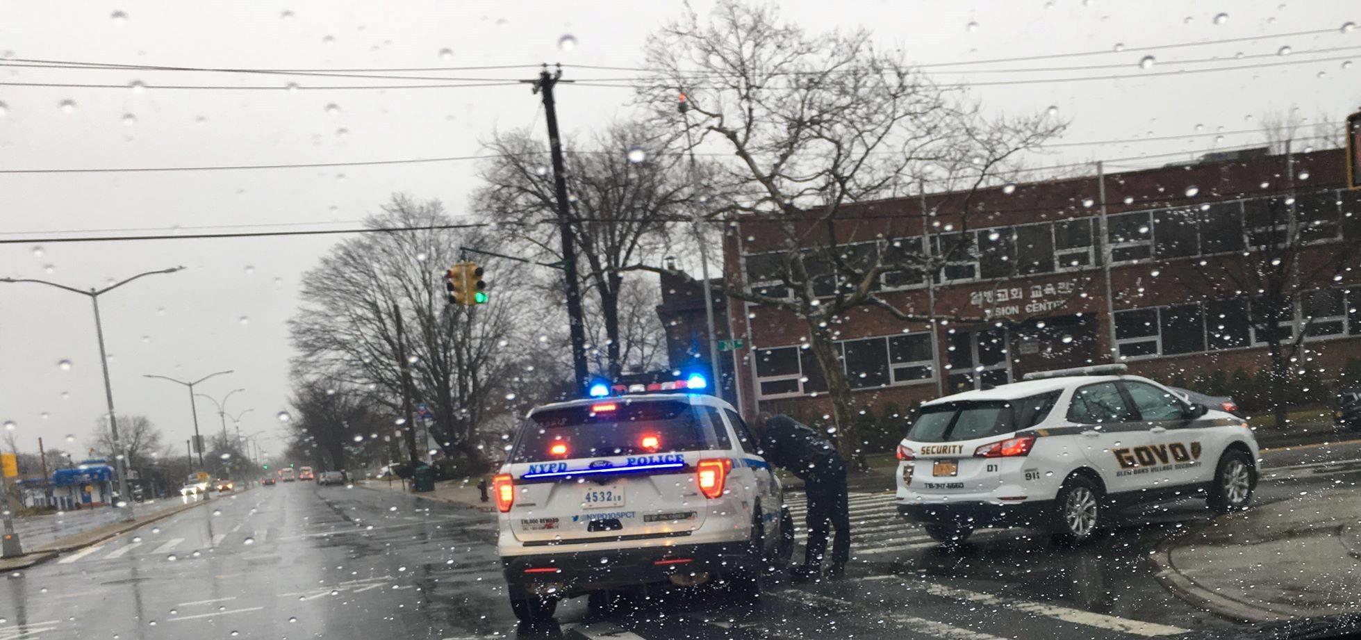 Police have pulled over Glen Oaks Village Co-op security for reckless driving on Union Turnpike eastbound and 263rd Street.