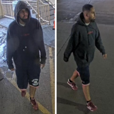 On Monday, 4/21/25, at approx. 10:31 AM, inside of 90-15 Queens Blvd, the individual  did follow the victim into the parking garage, grab the victim's shoulder bag from behind, and simulate a firearm in his hoodie pocket while demanding the