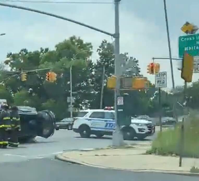 Heavy FDNY, police, EMS and ESU on Hillside Avenue reporting vehicle accident with one flipped. This is by the Cross Island Parkway entrane/exit east side. ESU is working to clear the traffic. Delays all around.