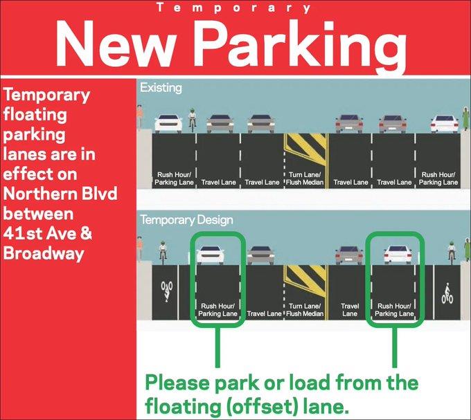 The city's DOT released the temporary floating lanes taking away one lane from each direction of Northern Blvd. The same model is already made into permanent in both Manhattan and Brooklyn where vehicles are limited. For the new bike lanes on Northern Blvd, one lane is lost to bikes and another will be replaced as rush hour and parking combined. This is between 41st Avenue and Broadway if approved permanently by the city with votes from the local community board. The city is also in the planning stage for Hillside Avenue and Jamaica Avenue from 168 Street to the Nassau border. More plans are underway.