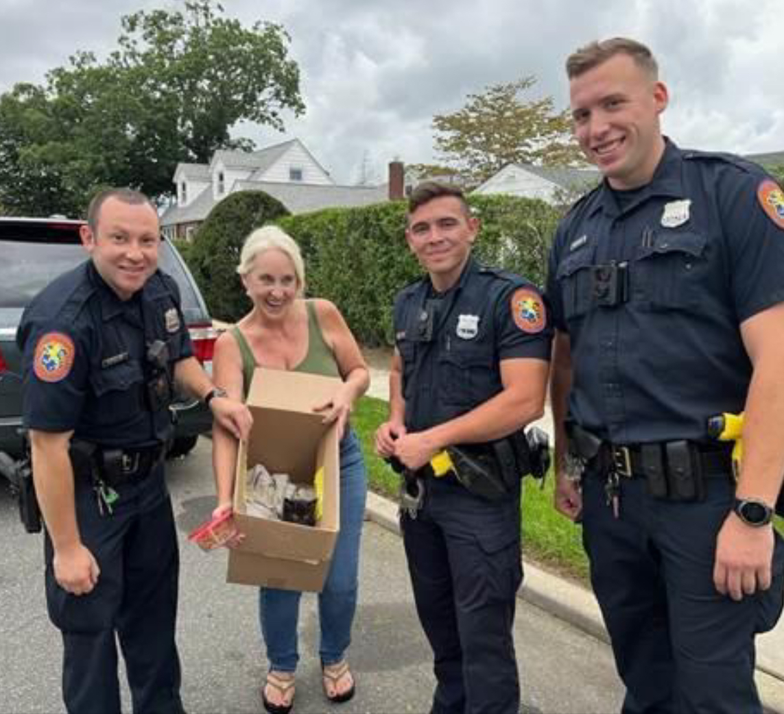 This little kitten is feline fine today after being rescued from the bottom of a storm drain in Franklin Square by 5th Precinct officers Police Giesler, Kelleher, Mielko, and Alvarado. They responded after Mary Lou Bakidis-Alpi called the #NassauCountyPD when she spotted the cat in the drain.  We're happy to report that the kitten - now called Scrappy! - received a clean bill of health and has been adopted by Mary Lou's niece. Welcome to the 5th Precinct, Scrappy! Don't use any more of your nine lives.