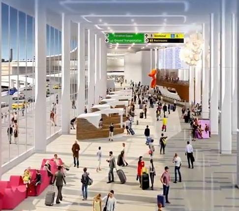 The state of the art building will have restaurants, shops and services. The major focus is the new AirTran that is still under work.