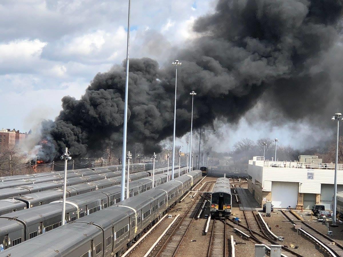 FDNY reporting fire at chemical and scraps company on Jamaica Avenue and 187th Street. The incident is next to LIRR station. Firefighters are working on the scene. Also, heavy delays in both directions on Jamaica Avenue. Now reporting LIRR Oyster Bay, Port Jefferson, Ronkonkoma, and Hempstead branches are suspended in both directions.