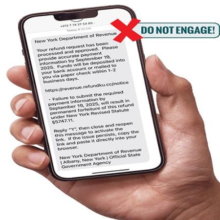 The NY Governor today warned of scammers who are sending text messages, voice messages, emails and direct mail to taxpayers in an attempt to spread false information about inflation refund checks. These messages falsely claim that people must submit accurate payment information in order to receive an inflation refund check, supposedly so revenue agencies can deposit money into a taxpayer's bank account. No one from the state or IRS will call.