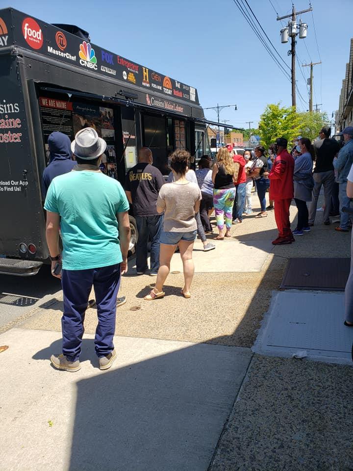 Long line for Maine Lobster truck in Bellerose