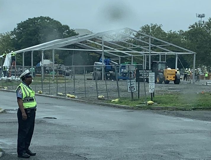 Today the city officials with private contractors are moving full force to install tents at the Creedmoor parking lot. This is on Hillside Avenue and 235th Street in the Glen Oaks Bellerose Queens Village vicinity. The Mayor’s Office stated by August 13 if the installation is complete, migrants will start coming to live under the tents with food, medical, cable, Xbox, unlimited long distance calls and much more.