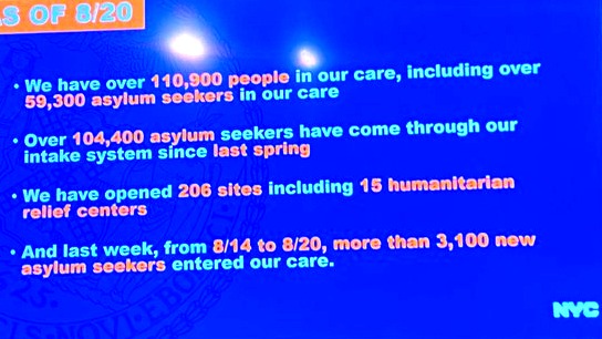 Meanwhile, 4,500 migrants received 60 days notice to vacate from the current shelters to make way for the new incoming from the open border down south. 100 migrants have left Creedmoor now totaling 800.