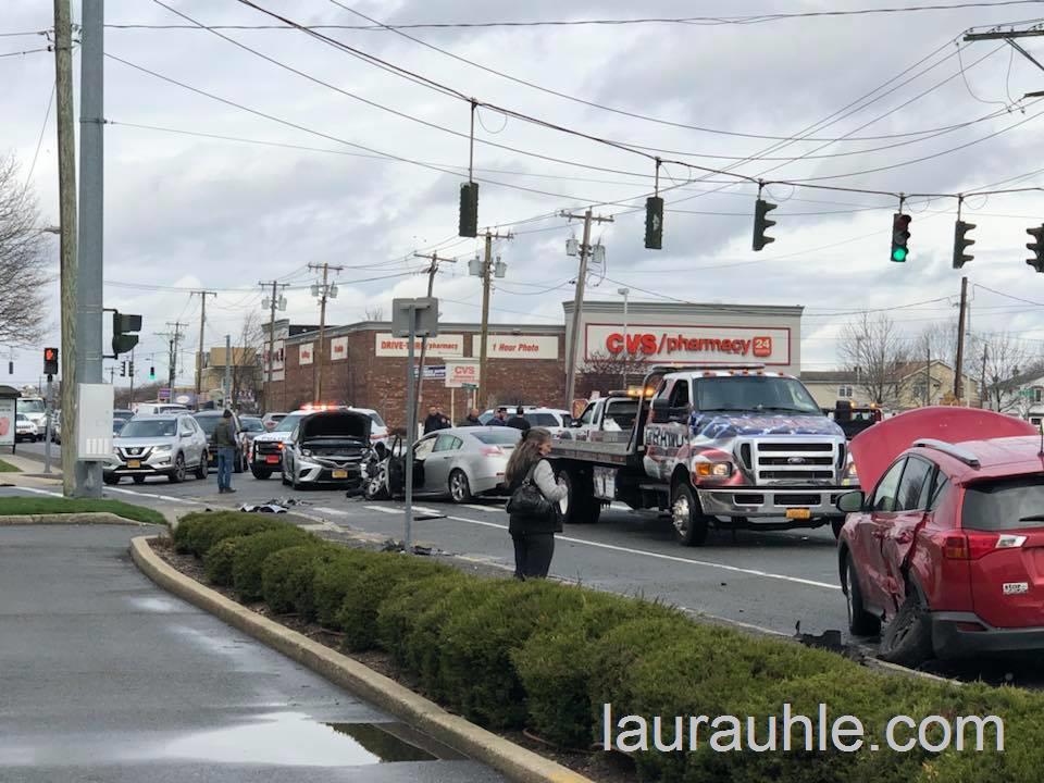 Hillside Avenue westbound at Stewart Avenue before Langdale Street, all lanes closed due to multiple vehicle accident with injuries. Police and EMS are on the scene.